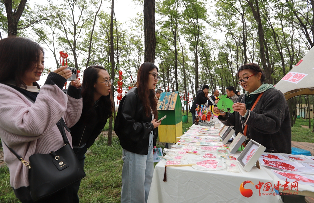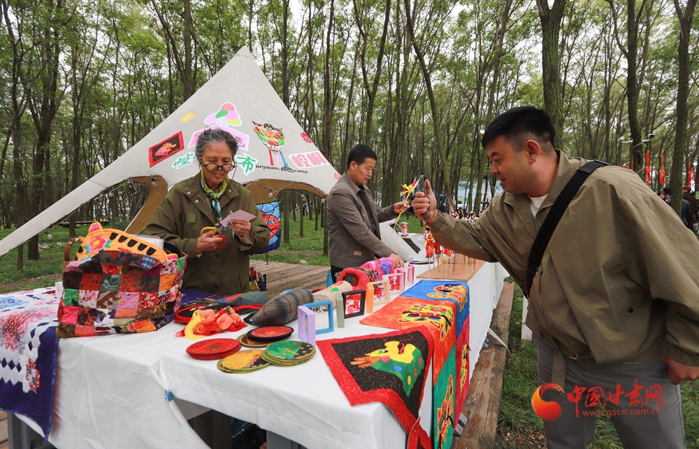 活動(dòng)現(xiàn)場(chǎng)還設(shè)置了非遺展示區(qū)與美食品鑒區(qū),天津剪布、面塑與崆峒剪紙、泥塑等交相輝映,羊肉泡饃、釀皮、油馓子等鄉(xiāng)土美食香氣四溢,讓現(xiàn)場(chǎng)觀眾愛(ài)不釋手。
