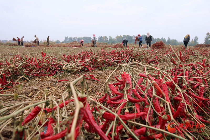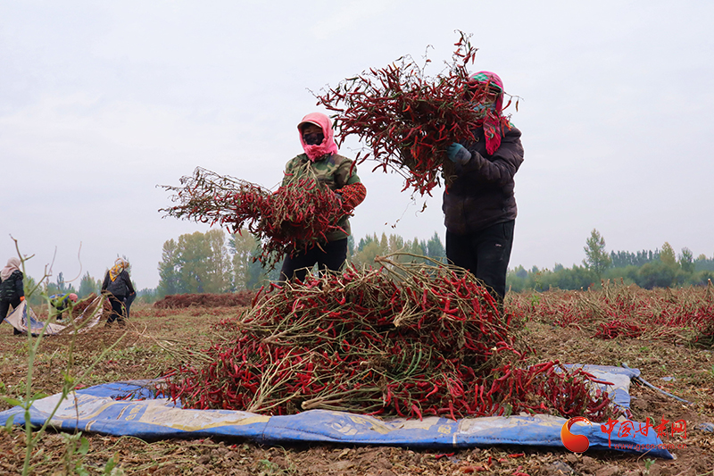 近日,走進臨澤縣蓼泉鎮(zhèn)墩子村的辣椒種植基地,一壟壟辣椒長勢旺盛,飽滿的辣椒掛滿枝頭。田間地頭,農(nóng)戶們正忙著將砍下的帶枝辣椒集中堆放,有條不紊地進行去枝處理,一派豐收忙碌的景象。